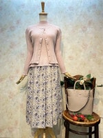 ◆ハイネックリブプルオーバー(CL-1139202-P)◆プリントスカート(AN-12003-BE)
