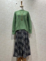 ウールナイロンの紡毛トップ糸(杢調)を使用したニットは、微妙な濃淡の糸がMIXされて表情豊かな色合いを表現します。